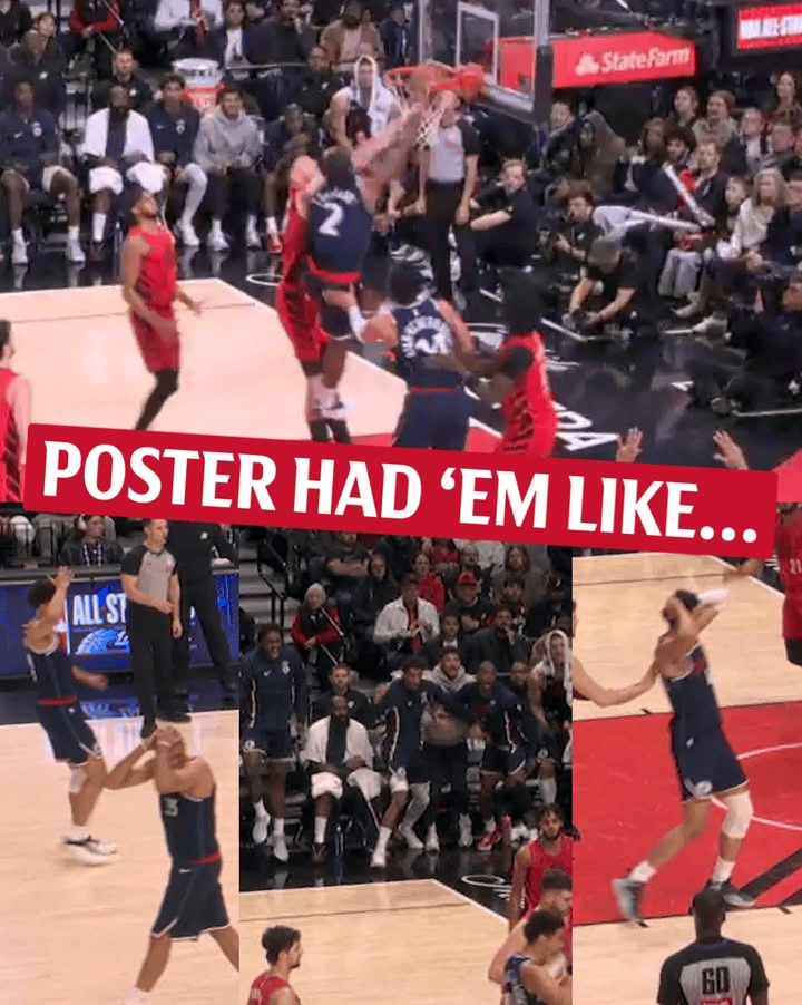 “科懷-倫納德的扣克暴力隔扣讓所有人目瞪口呆…… ????????!”